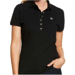 2023 Ariat Womens Prix 2.0 Short Sleeve Polo Top 10030467 – Black Colour Black