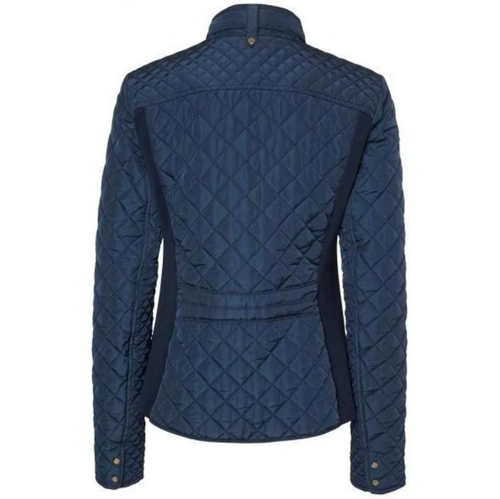 Elegant quilted ladies jacket with rib fabric inserts at sides for a close fit. Gold colored trims and details