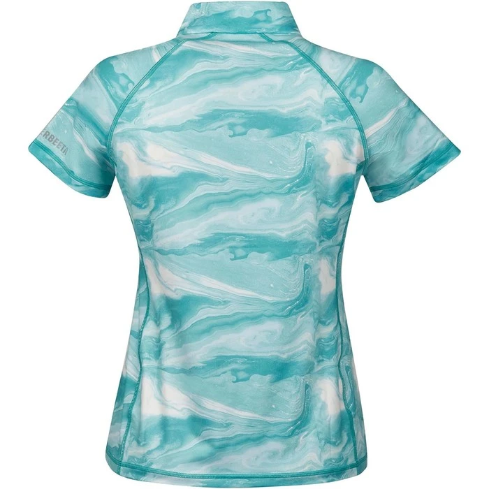 The WeatherBeeta Ruby Printed Short Sleeve Top offers bi-stretch jersey fabric for movement and comfort, making this is a great breathable base layer. The Comfort Dry Technology ensures any moisture dries quickly to keep you cool, comfortable and dry, with mesh side panels, under sleeves and back yoke for extra ventilation to keep you cool. Featuring a stand collar with 1/4 zip placket front and a slim fit for a flattering and marble printed stylish look. 90% Polyester/10% Elastane.