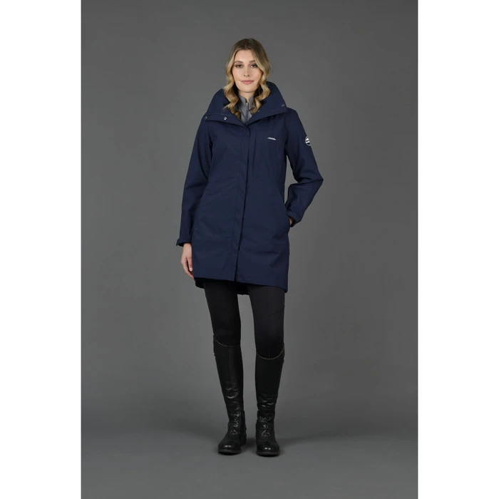 - Designed with an A-line shape with back hem saddle gusset for freedom of movement, double puller front zip and snaps to close.
