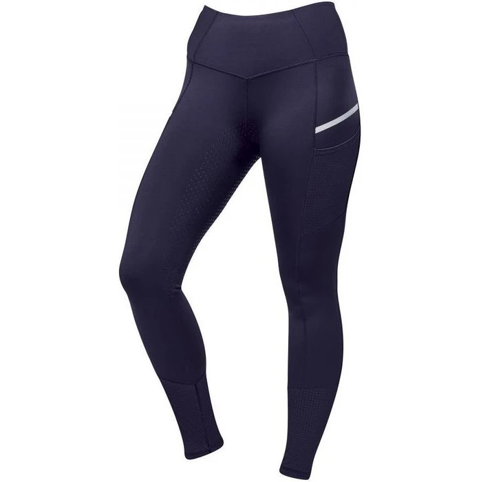 Technical riding tights in a breathable, polyester stretch fabric for rider comfort and movement made from a shape sculpting fabric offering compression. Full seat silicone print for grip and stability while riding. High flattering cut waistband with back zip pockets to keep valuables secure and laser perforated cuffs for breathability and phone pockets with sporty detailing.